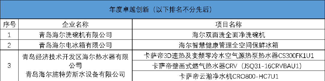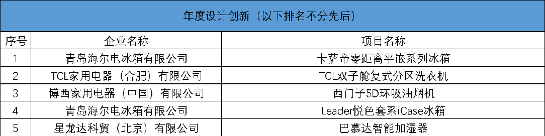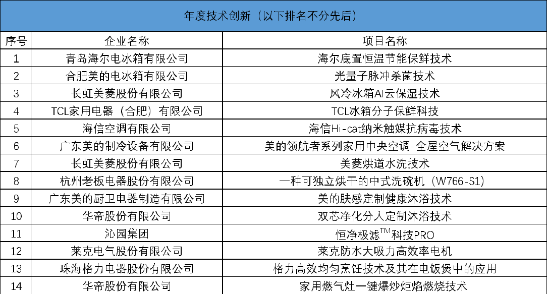 表:2022年中国家用电器创新成果一览